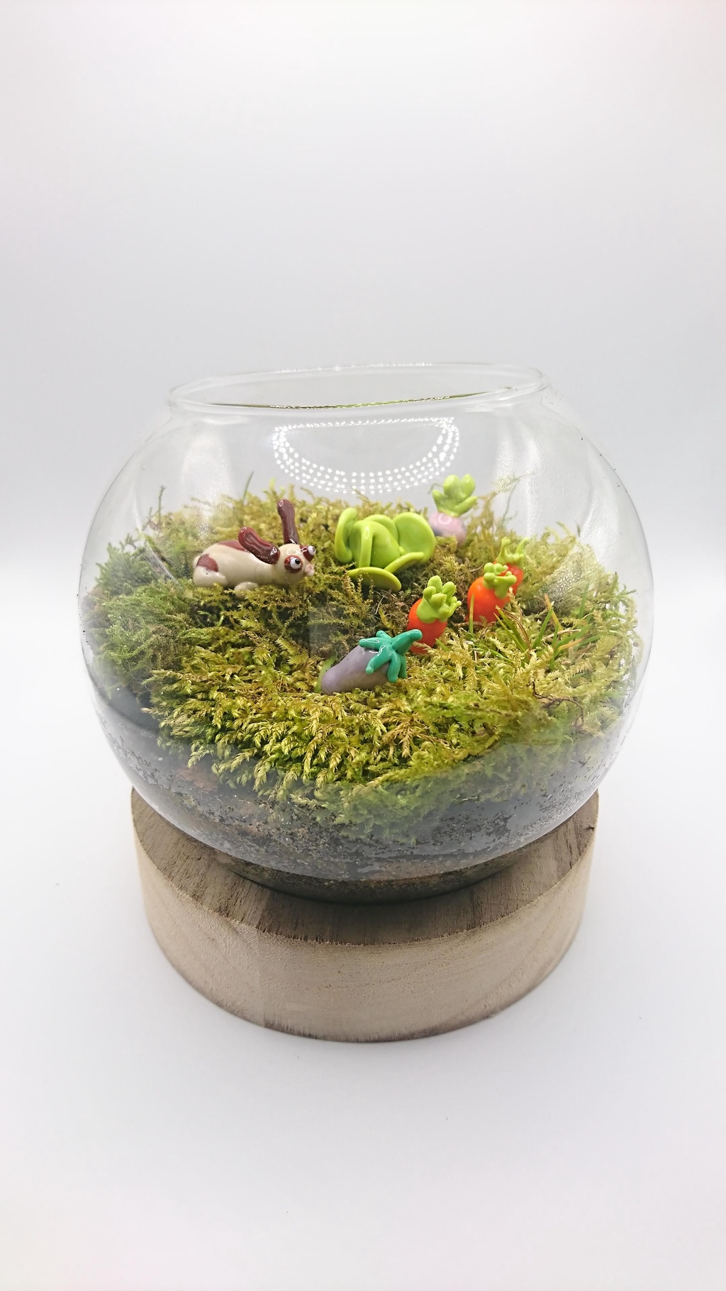C'est donc tout naturellement que je me suis lancée dans la création de petites sculptures inspirées de la faune et de la flore (champignons, animaux, fleurs, insectes...) pour décorer des terrariums de plantes grasses et/ou de mousses naturelles!